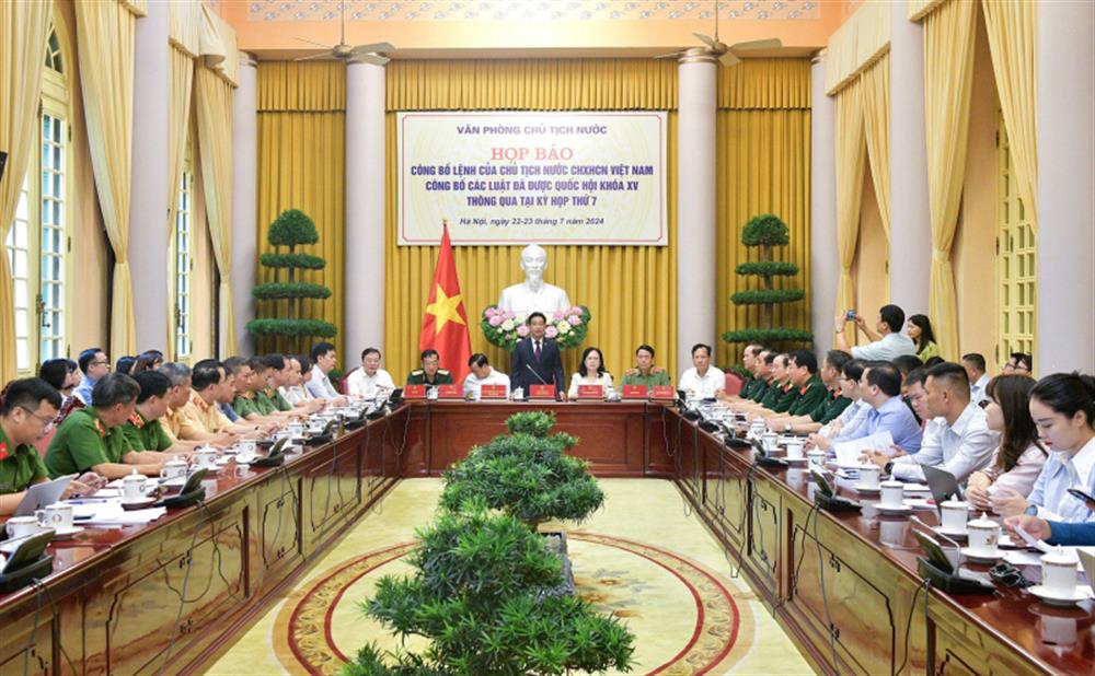 Sáng 22/7/2024, Văn phòng Chủ tịch nước đã tổ chức họp báo công bố Lệnh của Chủ tịch nước công bố các luật đã được Quốc hội khoá XV thông qua tại Kỳ họp thứ 7. Trung tướng Lê Quốc Hùng, Uỷ viên Trung ương Đảng, Thứ trưởng Bộ Công an tham dự, phát biểu, giới thiệu tóm tắt về Luật sửa đổi, bổ sung một số điều của Luật Cảnh vệ; Luật Quản lý, sử dụng vũ khí, vật liệu nổ và công cụ hỗ trợ; Luật Trật tự, an toàn giao thông (ATGT) đường bộ.